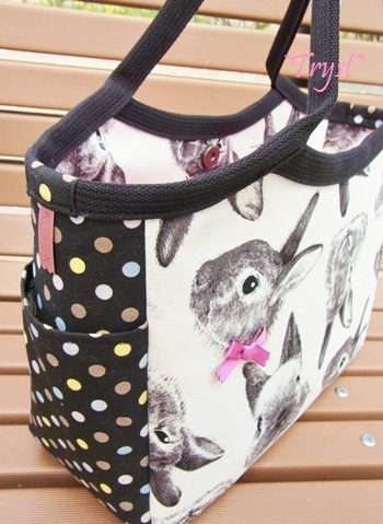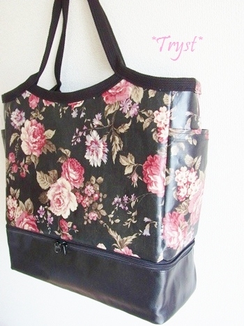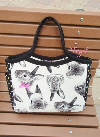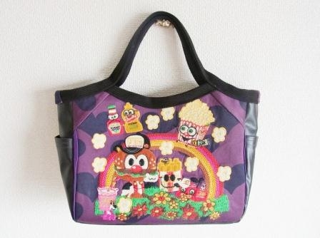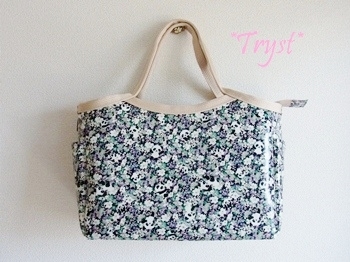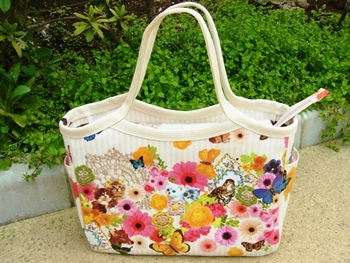 【New】< ラミネートグラニーバッグ (パンダ&花畑柄)> 大人でも子供でもOKなパンダ&花畑柄のグラニーバッグです。親子お揃いで♪というご依頼もあります。