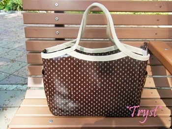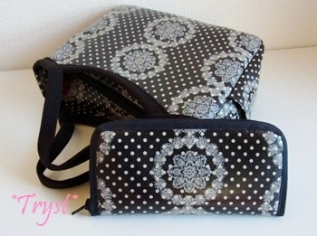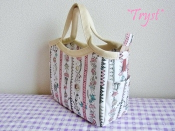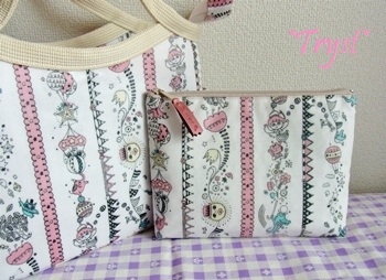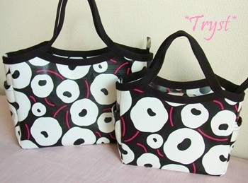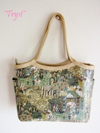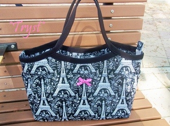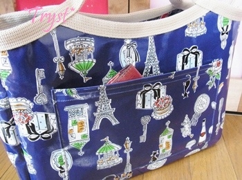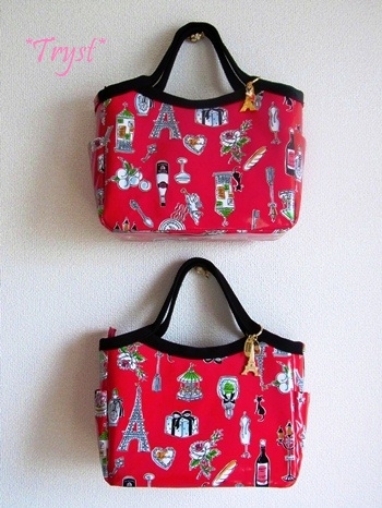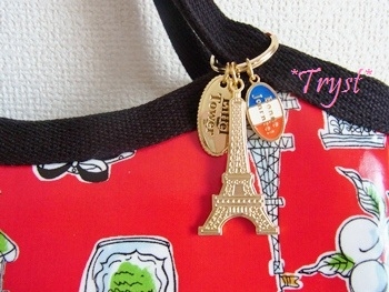 【NEW】<ラミネートグラニーバッグ(Paris柄 Sサイズ)-Order品-> お客様のご希望でチャームを付けました。こちらもお揃いだけどちょっと違います。