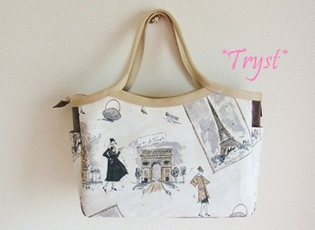 【New】<ラミネートグラニーバッグ(Paris柄 Sサイズ) -Order品-> お母様と叔母様へお揃いでプレゼントをということでご依頼頂きました。内布を変えているのでお揃いでもOnly oneなのです♪