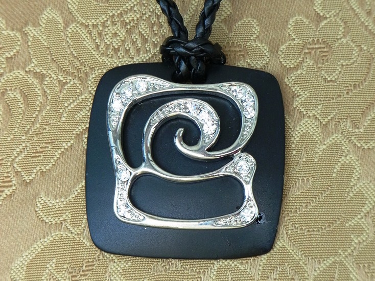 四角いフォルムに渦巻状にラインストーンが並んだ