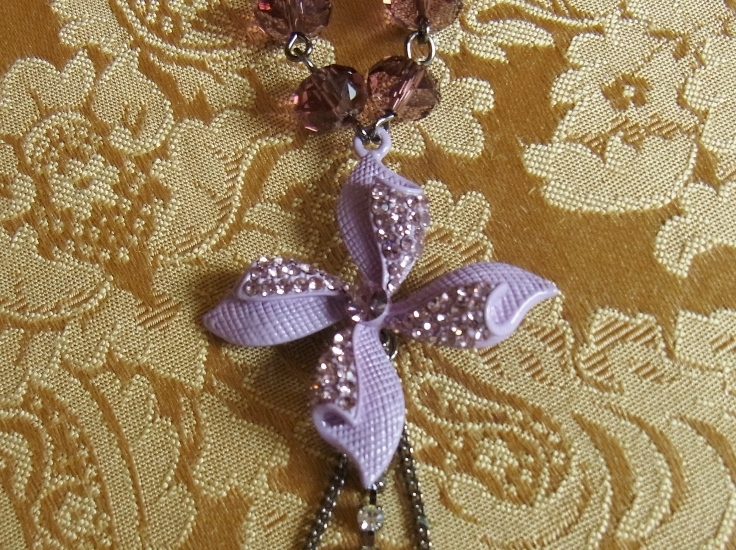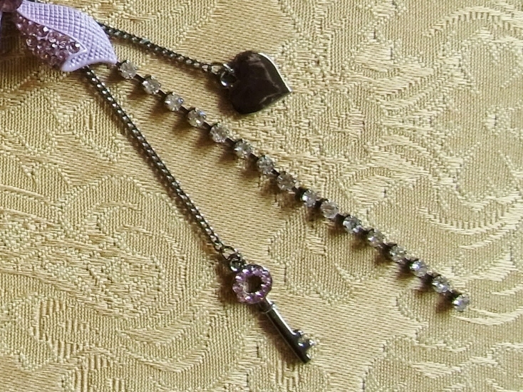 パープルのフラワー、ユラユラと揺れるハート・鍵・ラインストーンのチャーム...