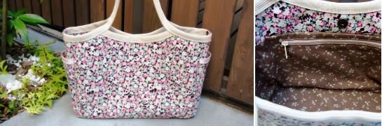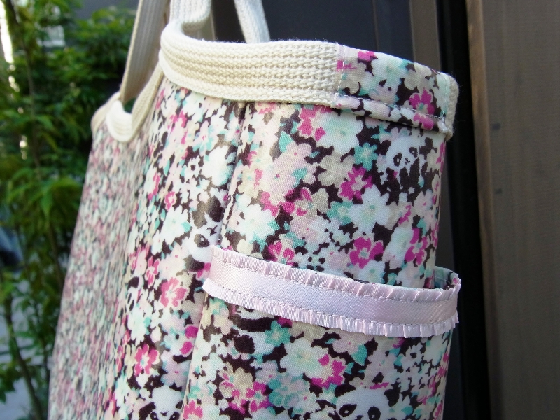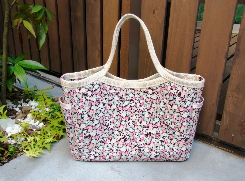 商品名:ラミネート グラニーバッグ(ピンク 花畑&パンダ)【Order可能商品】