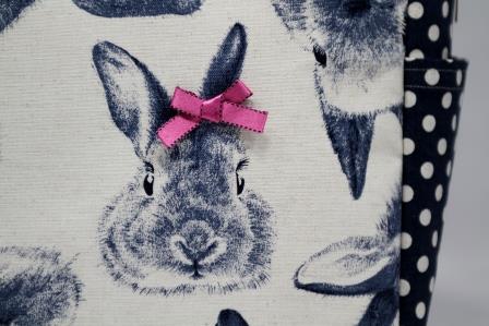 HOME > Handmade All List > グラニーバッグ(うさぎ×水玉・ブルー)