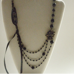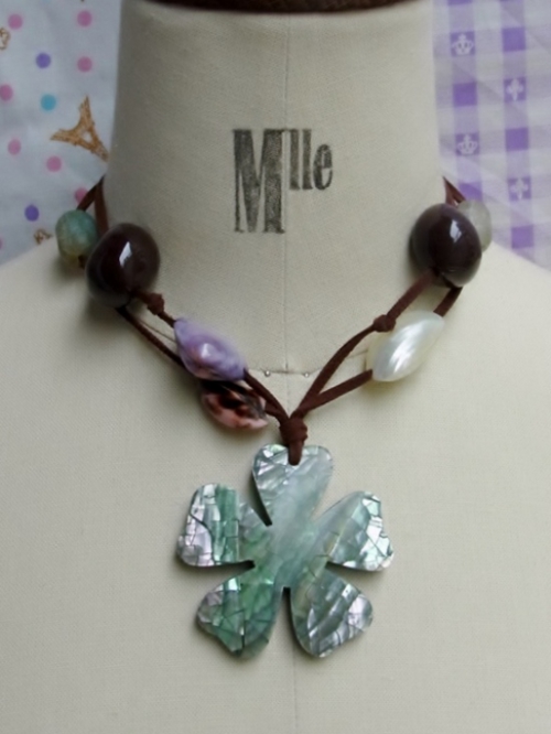 スエード調の紐に貝殻とイミテーションストーンが配置された