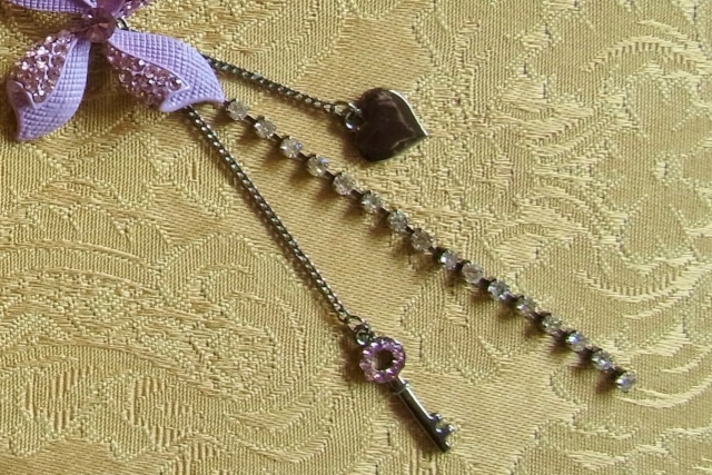 パープルのフラワー、ユラユラと揺れるハート・鍵・ラインストーンのチャーム...