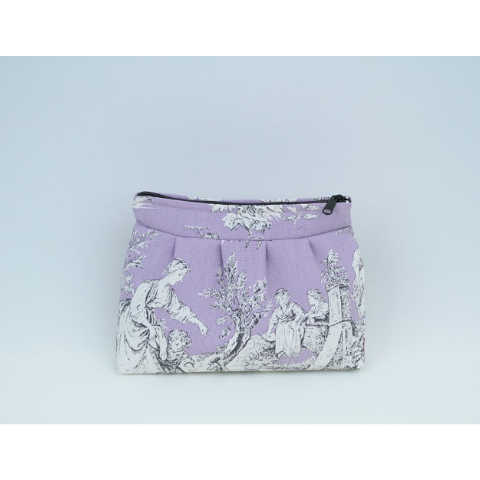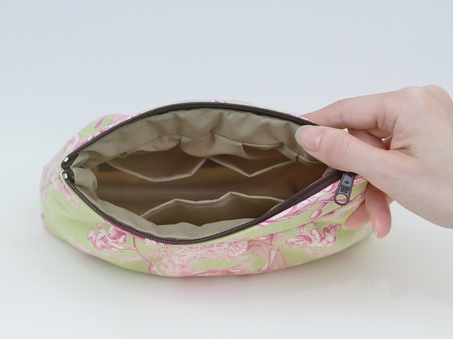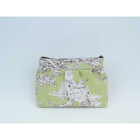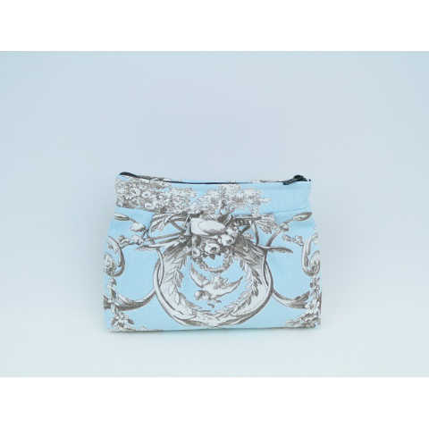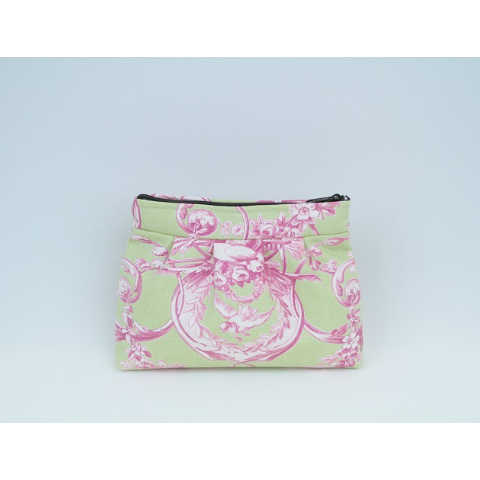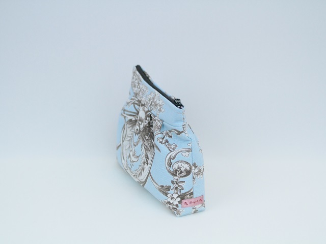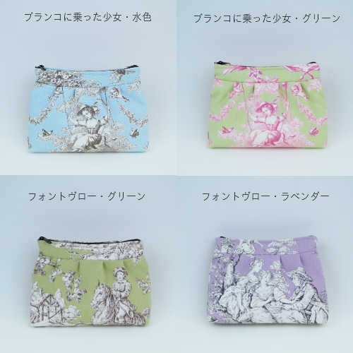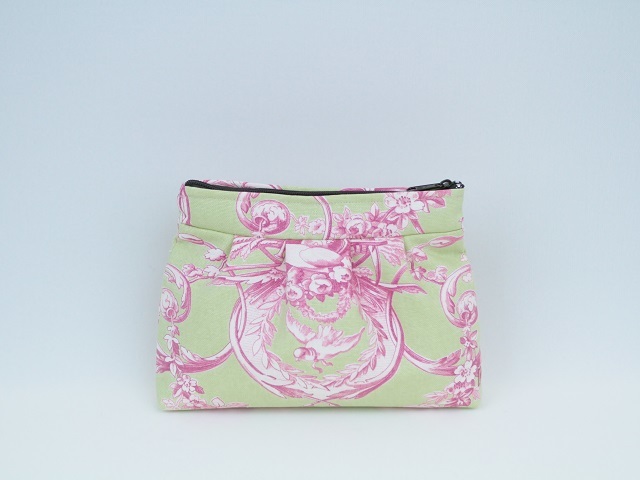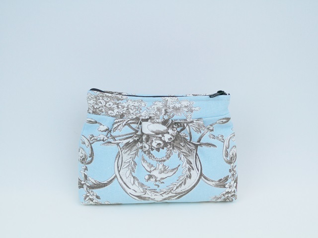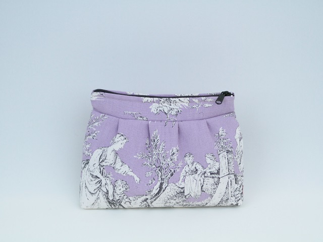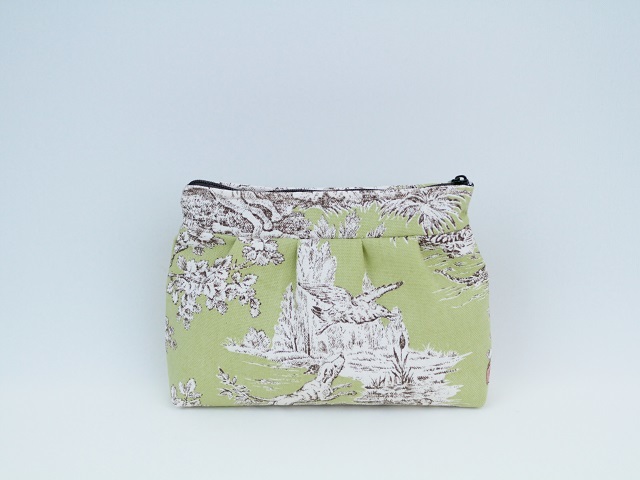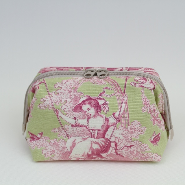 人気の高いフランスのファブリック、Toile de Jouy で製作したファスナーポーチ。